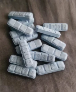 The “blue” Xanax, often referred to as Xanax 1 mg, typically comes in an oval or elliptical shape and is blue in color. It is one of the standard dosage forms and is often imprinted with a number (such as “031” or “B707”) depending on the manufacturer. The blue color signifies that it is a 1 mg dose, which is a moderate strength compared to the lower doses (like 0.25 mg or 0.5 mg) and the higher strength of blue Xanax bars (2 mg).